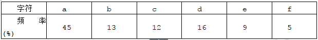 已知一个文件中出现的各个字符及其对应的频率如下表所示。若采用定长编码,则该文件中字符的码长应为(64)。若采用Huffman编码,则字符序列“face”的编码应为(65)。