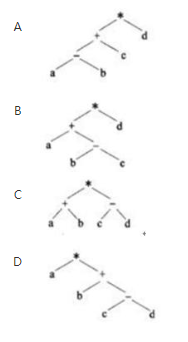 对于后缀表达式abc-+d*(其中,-、+、*表示二元算术运算减、加、乘),与该后缀式等价的语法树为()。