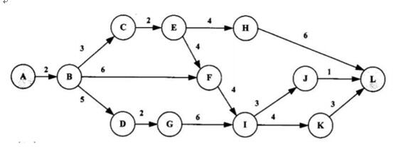 某软件项目的活动图如下图所示,其中顶点表示项目里程碑,连接顶点的边表示包含的活动,边上的数字表示活动的持续天数,则完成该项目的最少时间为()天。活动EH和IJ的松弛时间分别为(请作答此空)天。
