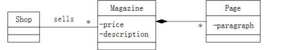 如图所示的UML类图中,Shop和Magazine之间为(41)关系,Magazine和Page之间为(42)关系。UML类图通常不用于对(43)进行建模。
