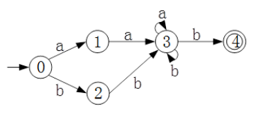 某确定的有限自动机(DF A)的状态转换图如下图所示(0是初态,4是终态),则该DFA能识别(49)。