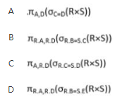 给定关系R(A,B,C, D)和S(C,D, E),若关系R与S进行自然连接运算,则运算后的元组属性列数为();关系代数表达式与(请作答此空)等价。