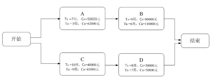 阅读下列说明,回答问题1至问题3,将解答填入答题纸的对应栏内。【说明】某监理单位承担了一个信息系统工程全过程的监理工作。在应用系统建设过程中,由于工期紧张,成本有限,监理工程师按照承建单位的进度计划严格进行跟踪检查,并要求承建单位对A、B、C、D四个重要活动进行成本优化。监理工程师在检查承建单位项目经理的成本优化方案时,检查了如下网络图: