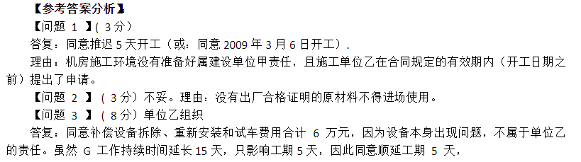 事件1:由于机房施工现场未按约定事件准备完毕,致使单位乙无法按期开工。2009年2月21日,单位乙向项目监理机构提出申请,要求开工日期推迟5关,经专业监理工程师审查,情况属实。