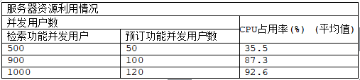 3、[问题3]对系统检索功能及预订功能执行负载压力测试,测试结果如表1-2所示。请指出服务器资源利用情况cpu占用率的测试结果是否满足性能需求并说明原因。(5分)