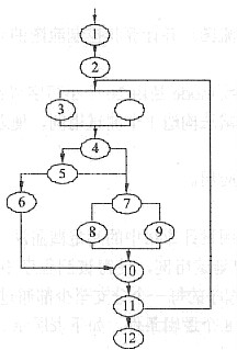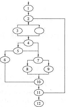 环路复杂度用来衡量一个程序模块所包含的判定结构的复杂程度,数量上表现为独立路径的条数,即合理地预防错误所需测试的最少路径条数。环路复杂度等于图中判定结点的个数加1,图中判定结点个数为5,所以V(G)=6。