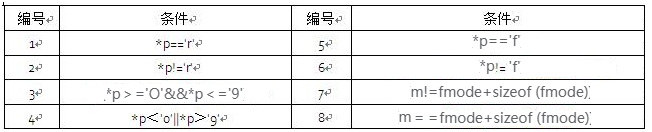 本题中程序的环路复杂度为6,因此测试用例上限为6,但本题程序比较特殊,只需要一个测试用例即可实现。例如,构造一个6个字符构成的字符串(设为x,y,z,u,v,w6个字符),使得每个字符覆盖一条基本路径即可。其中,X='r',y='f',z∈['0'-'9'],u<'0',v>'9'并且v!='f',w任意,这6个字符可任意排列。