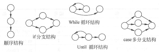 控制流图是描述程序控制流的一种图示方法。其基本符号有圆圈和箭线:圆圈为控制流图中的一个结点,表示一个或多个无分支的语句;带箭头的线段称为边或连接,表示控制流。基本结构如下所示: