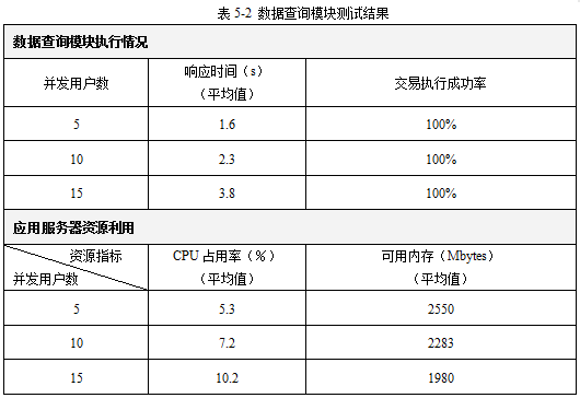 15、该系统数据接收模块和数据查询模块的测试结果如表5-1、表5-2所示,请分别指出测试结果是否满足性能需求并说明原因。(6分)