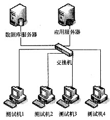 性能测试在系统质量保证中起重要作用。某项目组对一个电子政务平台系统执行了负载压力性能测试,重点评估其效率质量特性中的时间特性和资源利用性两个质量子特性。性能需求可以概括为:业务成功率达到100%;响应时间在8秒之内;服务器资源利用合理。测试环境逻辑部署图如下图。