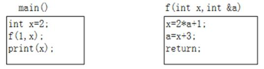 函数main()、f()的定义如下所示。调用函数f()时,第一个参数采用传值(callbyvalue)方式,第二个参数采用引用调用(callbyreference)方式,main()执行后输出的值为()