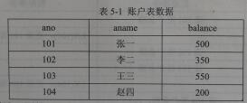 [说明]某商业银行账务系统的部分关系模式如下:账户表:Account(ano,aname,balance),其中属性含义分别为:账户号码,账户名称和账户余额。交易明细表:TranDetails(tno,ano,time,toptr,amount,ttype),其中属性分别为:交易编号,账户号码,交易时间,交易操作员,交易金额,交易类型(1-存款,2-取款,3-转账)。余额汇总表:AcctSums(adate,atime,allamt),其中属性分别为:汇总日期,汇总时间,总余额。常见的交易规则如下:存/取款交易:操作员核对用户相关信息,在系统上执行存/取款交易。账务系统增加/减少该账户余额,并在交易明细表中增加一条存/取款交易明细。转账交易:操作员核对用户相关信息,核对转账交易账户信息,在系统上执行转账交易。账务系统对转出账户减少其账户余额,对转入账户增加其账户余额,并在交易明细表中增加一条转账交易明细。余额汇总交易:将账户表中所有账户余额累计汇总。假定当前账户表中的数据记录如表5-1所示。