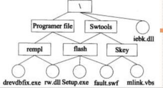 若某文件系统的目录结构如下图所示,假设用户要访问文件rw.dll,且当前工作目录为swtools,则该文件的相对路径和绝对路径分别为()