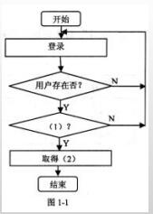 三种常用的用户验证方法:要求用户输入一些保密信息;采用物理识别设备;采用生物统计学系统,基于某种特殊的物理特征对人进行唯一性识别。流程图要填写的内容:(1)密码正确否?(2)授权或用户名和密码