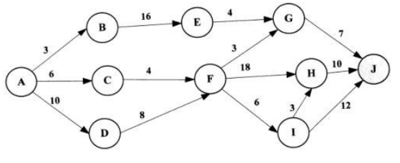 某软件项目的活动图如下图所示,其中顶点表示项目里程碑,连接顶点的边表示包含的活动,边上的数字表示活动的持续时间(天),则完成该项目的最少时间为,(请作答此空)天。活动FG的松驰时间为()天。