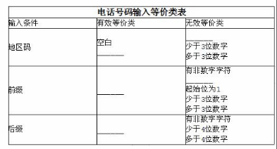 某软件公司承担了为企业开发电子商务系统的任务,为了保证软件系统的质量,软件公司在成立项目组的同时,成立了该项目的测试小组。测试组对软件开发的全过程进行了测试,重点针对软件的功能和性能进行测试。测试组按照软件测试实施过程对软件进行了全面测试。在测试过程中,测试组完成了以下测试工作:A.检查软件是否满足合同规定的所有功能和性能,文档资料是否完整,确认人机界面和其他方面是否令用户满意。B.检验软件产品能否与实际运行环境中的系统的其他部分(如硬件、数据库及操作人员等)协调地工作。C.通过对被测模块的数据流进行测试,检查进出模块的数据是否正确。D.将各个子功能组合起来,检查能否达到预期要求。E.重新执行已经做过测试的某个子集,保证没有引入新的错误。F.从实际终端用户的使用角度,对软件的功能和性能进行测试,以便发现可能只有最终用户才能发现的错误。从软件测试实施过程的角度看,______是单元测试;______是集成测试,______是确认测试,______是系统测试,______是验收测试,______是回归测试。软件系统中关于电话号码是这样设定的:电话号码由地区码、前缀和后缀3部分组成。地区码由空白或3位数字组成;前缀是非“0”或非“1”开头的3位数字;后缀是4位数字。测试小组设计了等价类,如表所示。请根据题目说明及表,填空。