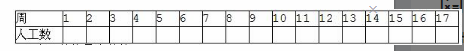 此时,各周所需人工数的最大差值为9,需再做调节。由于活动4仍然有一周的时差,因此将活动4推后1周,则各周所需人工数为: