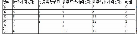 某公司要建设一个网站,下表是建设中各项活动的时间需求及人员需求预算值。