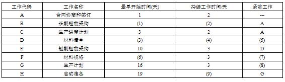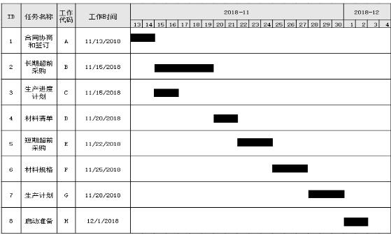 阅读以下说明,根据要求回答问题。【说明】大龙公司是一家汽车零部件生产企业,在网上有定制生产服务项目。近日公司接到一份新配件生产意向,用户希望公司做一个配件生产周期和经费预算方案,为合同签订做准备。下图是公司制定的工作计划甘特图。