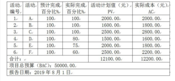 下表给出了某信息化建设项目到2019年8月1日为止的成本执行(绩效)数据,如果当前的成本偏差是非典型的,则完工估算(EA C)为:()