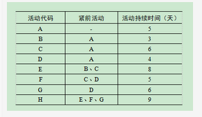 试题二(22分)阅读下列说明,回答问题1至问题4,将解答填入答题纸的对应栏内。【说明】某项目细分为A、B、C、D、E、F、G、H共八个模块,而且各个模块之间的依赖关系和持续时间见下表: