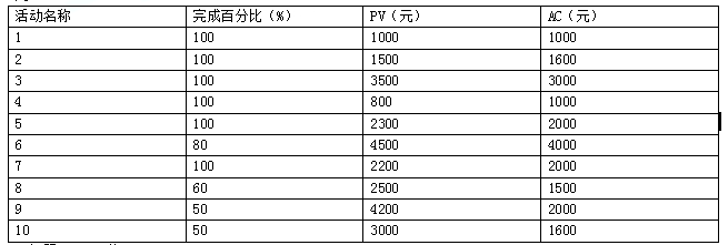 下表给出了某信息系统建设项目的所有活动截止到2018年6月1日的成本绩效数据,项目完工预算BAC为30000元。