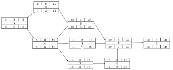 按照网络图,到20天,ABCDEFG工作应该全部完成,所以: