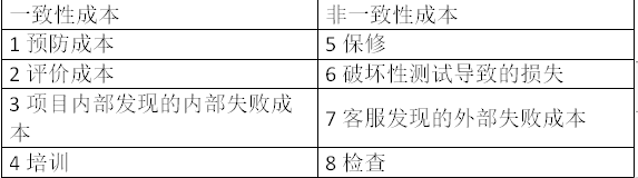 3.质量规划阶段需要考虑质量成本的因素,质量成本是项目总成本的一个组成部分,因此张工建立了如下表格,以区分一致性成本和非一致性成本。