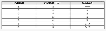 因公司进行一个项目其包含 A, B, C, D, E, F,G七个活动,各活动的历史估算和活动间的逻辑关系如下表所示,该项目的工期是()天。因该项目对资源限制和项目的不确定性,为保证项目的按质按量的完成,项目经理薛大龙采用了在原进度计划采用了关键链路法,设置了项目的接驳缓冲为1天和项目缓冲为4天,项目总工期是(请作答此空)。
