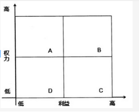 下图干系人权力和利益的描述,不正确的是 ( ) 。