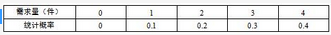 某公司打算经销一种商品,进价为450元/件,售价500元/件。若进货商品一周内售不完,则每件损失50元。假定根据已往统计资料估计,每周最多销售4件,并且每周需求量分别为0、1、2、3和4件的统计概率与统计概率之间的关系如下表所示。 则公司每周进货 ( ) 件可使利润最高。