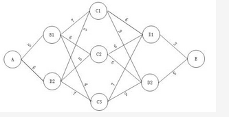 下图中,从A到E的最短长度是 ( ) (图中每条边旁的数字为该条边的长度)