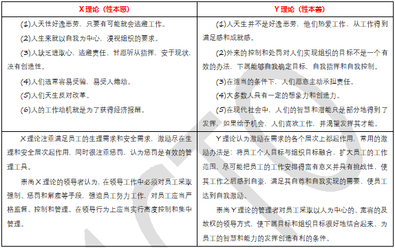 本题考的是X理论知识的理解程度,我们都知道美国心理学家麦格雷戈在1957年提出了X理论-Y理论。X理论和Y理论于人性的假设截然相反。