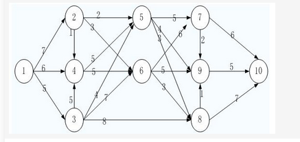某工程的进度计划网络图如下,其中包含了①~⑩10个结点,节点之间的剪线表示作业及其进度方向,箭线旁标注了作业所需的时间(单位:周)。设起始结点①的时间为0,则结点⑤的最早时间和最迟时间分别为( )周。
