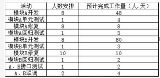 某公司承接了一个软件外包项目,项目内容包括A、B两个模块的开发测试,项目经理创建了项目的WBS(见下表)。估算了资源、工期、项目人力资源成本是1000元/人.天。