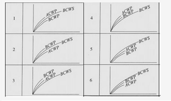 对以下六幅图表,分别分析其所代表的效率、进度和成本等情况,针对每幅图表所反映的问题,可采取哪些调整措施?