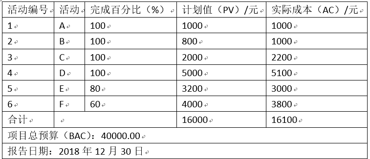 下表给出了某项目到2018年12月30日为止的部分成本执行(绩效)数据。如果当前的成本偏差是非典型的,则完工估算(EA C)为( )元。