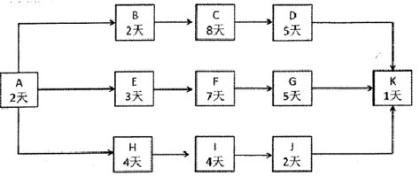 (1) 关键路径为ABCDK和AEFGK。(2) 总工期为18天。(3) C在关键路径上,总时差和自由时差为0。