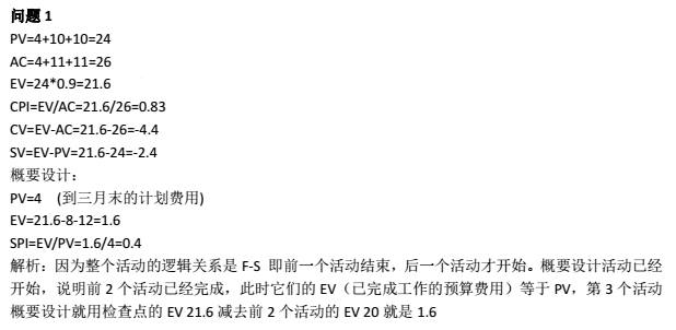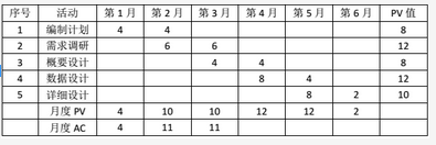 计算中期检查时项目的CPI、CV和SV,以及“概要设计”活动的EV和SPI。