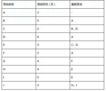 某信息系统项目包含如下十个活动,个活动的历时、活动逻辑关系如下表所示: