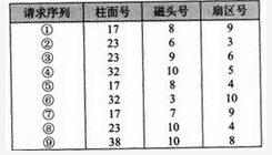 在磁盘调度管理中,应先进行移臂调度,再进行旋转调度。假设磁盘移动臂位于21号柱面上,进程的请求序列如下表所示。如果采用最短移臂调度算法,那么系统的响应序列应为( )。