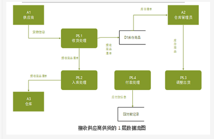 某公司正在研发一套新的库存管理系统。系统中一个关键事件是接收供应商供货。项目组系统分析员小王花了大量时间在仓库观察了整个事件的处理过程,并开发出该过程所执行活动的列表:供应商发送货物和商品清单。公司收到商品后执行收货处理,包括卸载商品、确定收到了订单上的商品、处理与供应商的分歧等。对于已有商品,调整其库存信息,对于新采购的商品,在库存中添加新的商品记录。收货完成后,系统执行入库处理,将商品放到仓库对应的货架上。在付款处理活动中,自动生成应付账款信息,如果查询到该供应商有待付款记录,则进行合并付款,付款完成后消除应付账款记录。最后,仓库管理员根据最新的库存商品,调整出货信息。