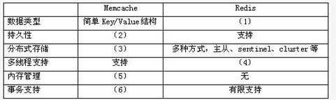[问题1](9分)在李工和刘工的方案中,均采用分布式数据库缓存技术来解决问题。请说明分布式数据库缓存的基本概念。表4- 1中对MemCache和Redis两种工具的优缺点进行了比较,请补充完善表4-1中的空(1) ~ (6) 。表4-1