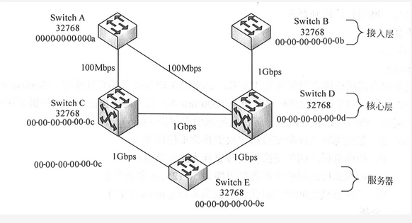 下图所示是一个园区网的一部分,交换机A和B是两台接入层设备,交换机C和D组成核心层,交换机E将服务器群连接至核心层。如图所示,如果采用默认的STP设置和默认的选举过程,其生成树的最终结果为()。如果根桥的选择采用默认设置,下列说法不正确的是(请作答此空)。