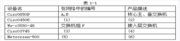 根据图1-1,对该网络主要设备清单表1-1所示内容补充完整.