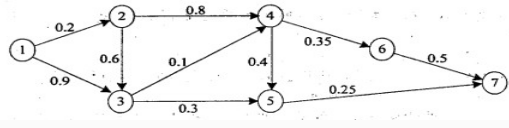 小王需要从①地开车到⑦地,可供选择的路线如下图所示。图中,各条箭线表示路段及其行驶方向,箭线旁标注的数字表示该路段的拥堵率(描述堵车的情况,即堵车概率)。拥堵率=1-畅通率,拥堵率=0时表示完全畅通,拥堵率=1时表示无法行驶。根据该图,小主选择拥堵情况最少(畅通情况最好)的路线是()。