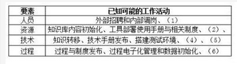 某大型国有汽车公司,由于自主研发的节能电动车性价比高,业务发展迅速。为解决全国多个分支机构的管理问题,去年信息化建设投入大,完成了ERP等重点核心业务系统的建设。为尽快向各部门提供标准高效的服务,公司IT服务总监与小王和小李两位系统规划与管理师共同设计了公司的服务目录与服务方案,并计划今年部署实施。为确保公司高层支持部署工作,总监安排小王和小李分别准备相关汇报材料。小王负责部署实施的整体计划,通过整理相关材料,把部署实施工作分为三个阶段和四个要素,针对不同要素罗列了已知可能的工作内容,如下表: