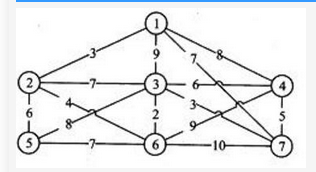 某小区有七栋楼房①~⑦(见下图),各楼房之间可修燃气管道路线的长度(单位:百米)已标记在连线旁。为修建连通各个楼房的燃气管道,该小区内部煤气管道的总长度至少为()百米。