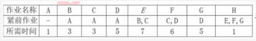 某项目有A~H八个作业,各作业所需时间(单位:周)以及紧前作业如下表 该项目的工期为()周。如果作业C拖延3周完成,则该项目的工期(请作答此空)