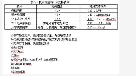 某公司开发的B2C商务平台因业务扩展,导致系统访问量不断增大,现有系统访问速度缓慢,有时甚至出现系统故障瘫痪等现象。面对这一情况,公司召开项目组讨论会议,寻求该商务平台的改进方案。讨论会上,王工提出可以利用镜像站点、CDN内容分发等方式解决并发访问量带来的问题。而李工认为,仅仅依靠上述外网加速技术不能完全解决系统现有问题,如果访问量持续增加,系统仍存在崩渍的可能。李工提出应同时结合Web内网加速技术优化系统改进方案,如综合应用负载均衡、缓存服务器、Web应用服务器、分布式文件系统、分布式数据库等。经过讨论,公司最终决定采用李工的思路,完成改进系统的设计方案。